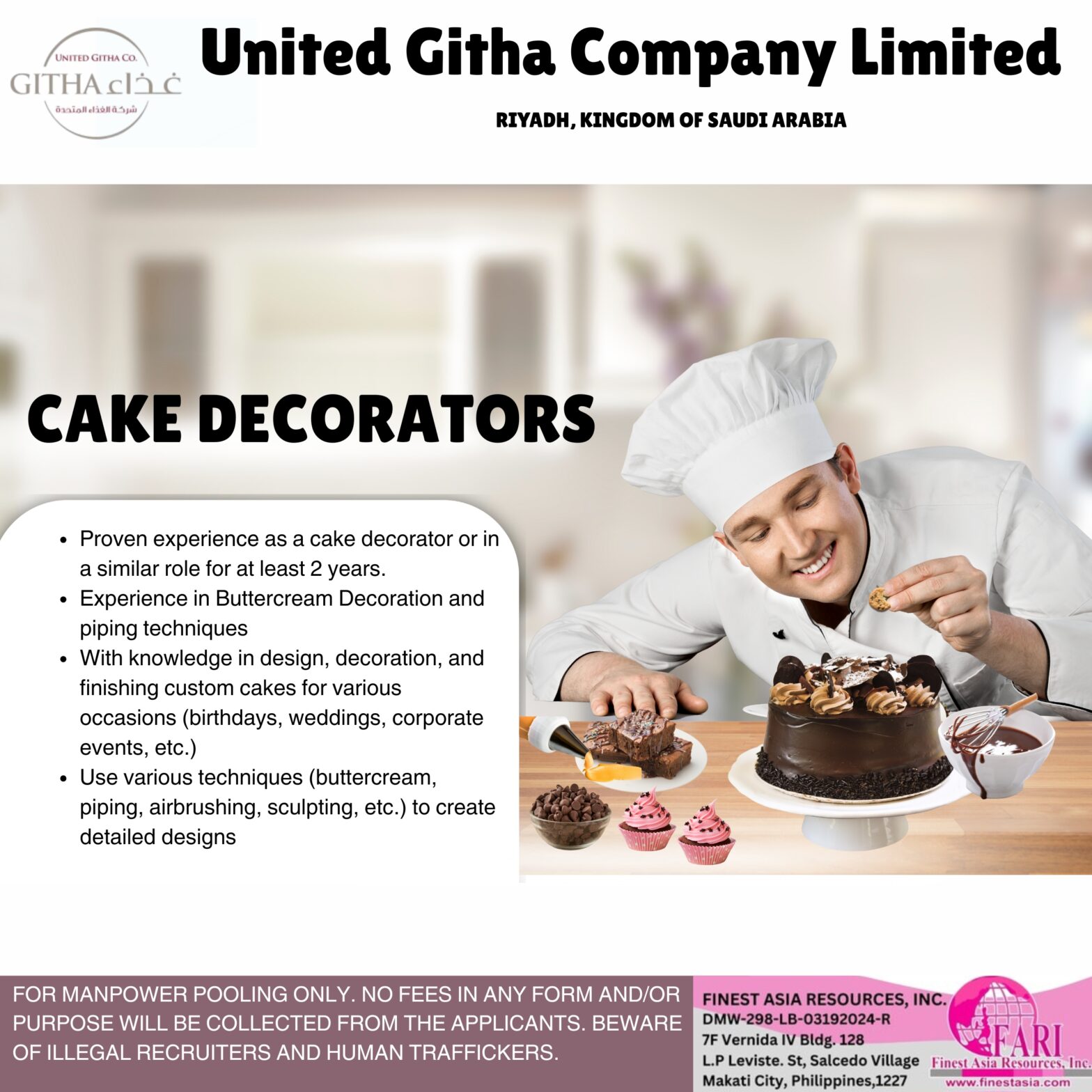 Cake Decorators for United Githa Company Limited United Githa Company Limited bound to Riyadh, Kingdom of Saudi Arabia