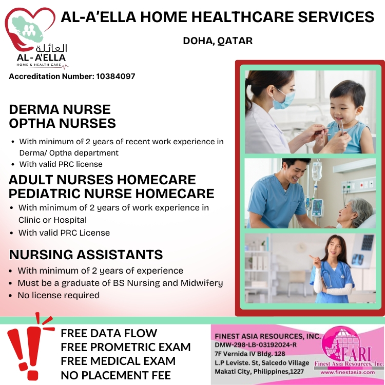 Derma Nurse / Optha Nurses / Adult Nurses Homecare / Pediatric Nurse Homecare / Nursing Assistants for AL-A’ELLA HOME HEALTHCARE SERVICES