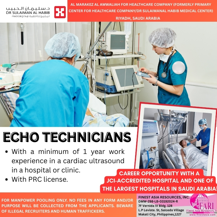 Echo Technicians for AL MARAKEZ AL AWWALIAH FOR HEALTHCARE COMPANY AL MARAKEZ AL AWWALIAH FOR HEALTHCARE COMPANY bound to Riyadh, Saudi Arabia
