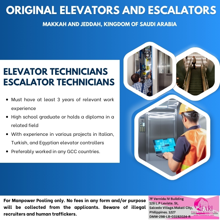 Elevator Technicians / Escalator Technicians for Original Elevators and Escalators