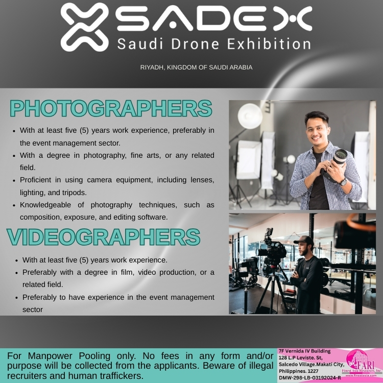 Photographers / Videographers for SADEX Saudi Drone Exhibition SADEX Saudi Drone Exhibition bound to Riyadh, Saudi Arabia